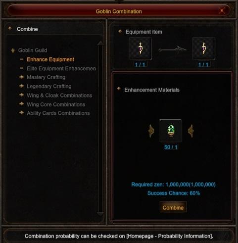 From the +7 level, the success rate increases to 80%, but if the combination fails, the item will be reset to +0.