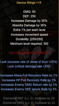 On top of that, the Excellent options are not standard—theyre carefully curated for each wing to ensure meaningful impact. These can include bonuses like increased attack speed, HP recovery rate, ignore enemy defense, PvP defense rate, and more—designed specifically to complement the wings core traits and the character class it belongs to.
